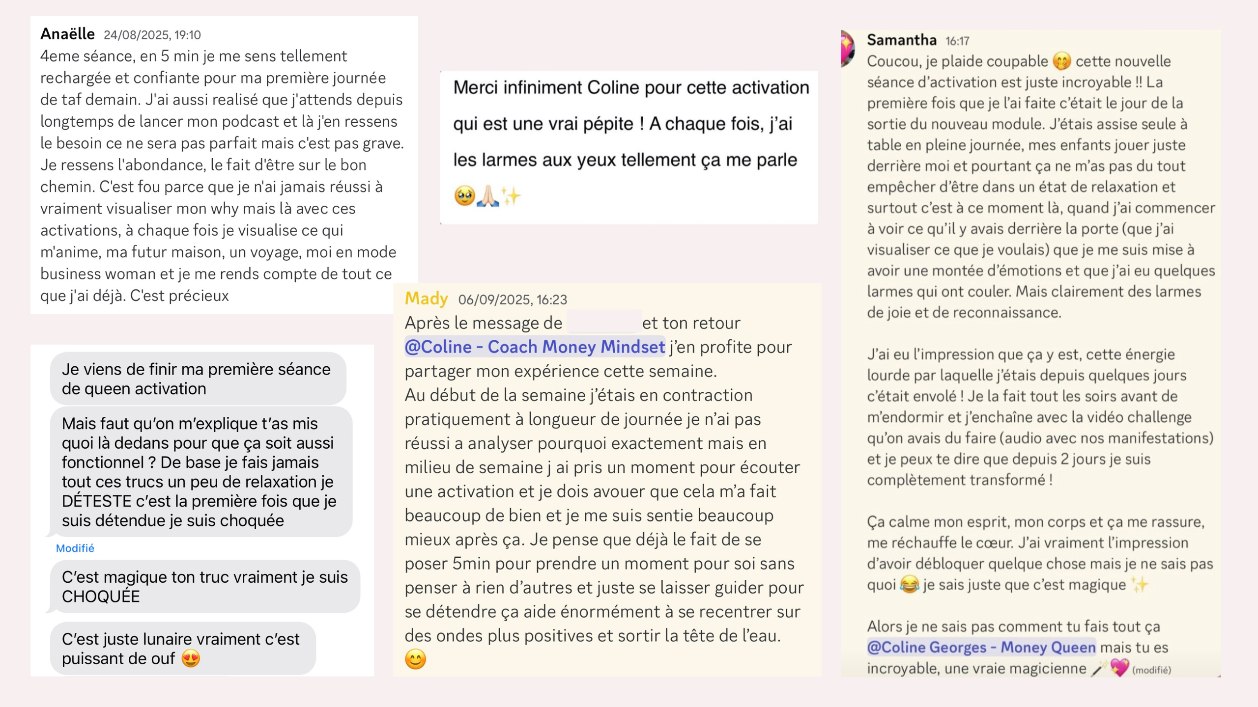 Ces séances sont faites pour toutes celles qui veulent arrêter de galérer, attirer plus de richesse et se sentir puissantes dans leur business et leur vie. Tu ne dois rien faire d’autre que de te laisser guider et accueillir ce qui se présente.