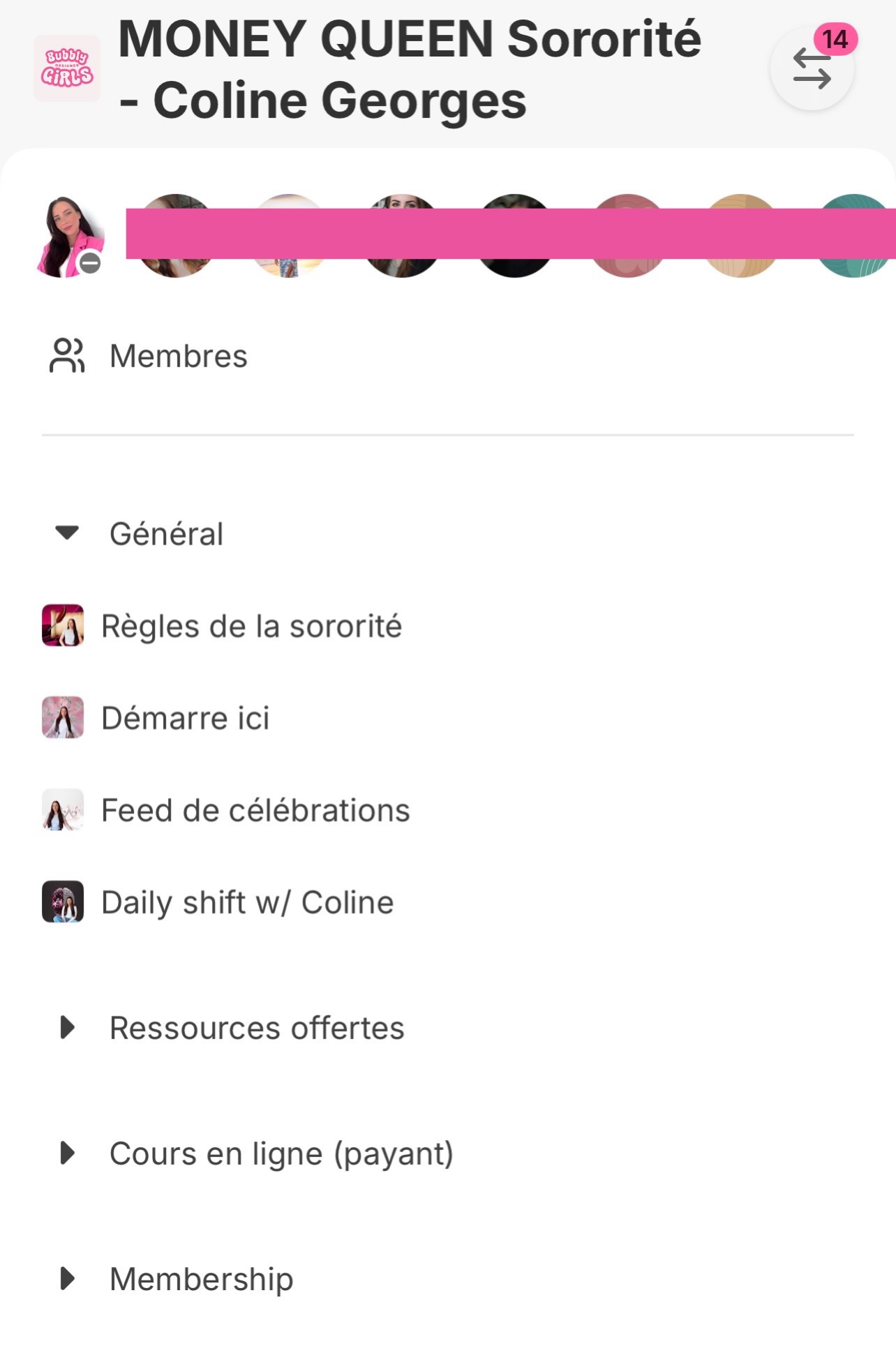 Tout l'univers de l'entreprise Bubbly Girls Designer est enfin centralisé au même endroit : programmes, ressources, audios, enseignements en neurosciences et manifestation d'argent, lives, replays, événements, membership, communauté, ...